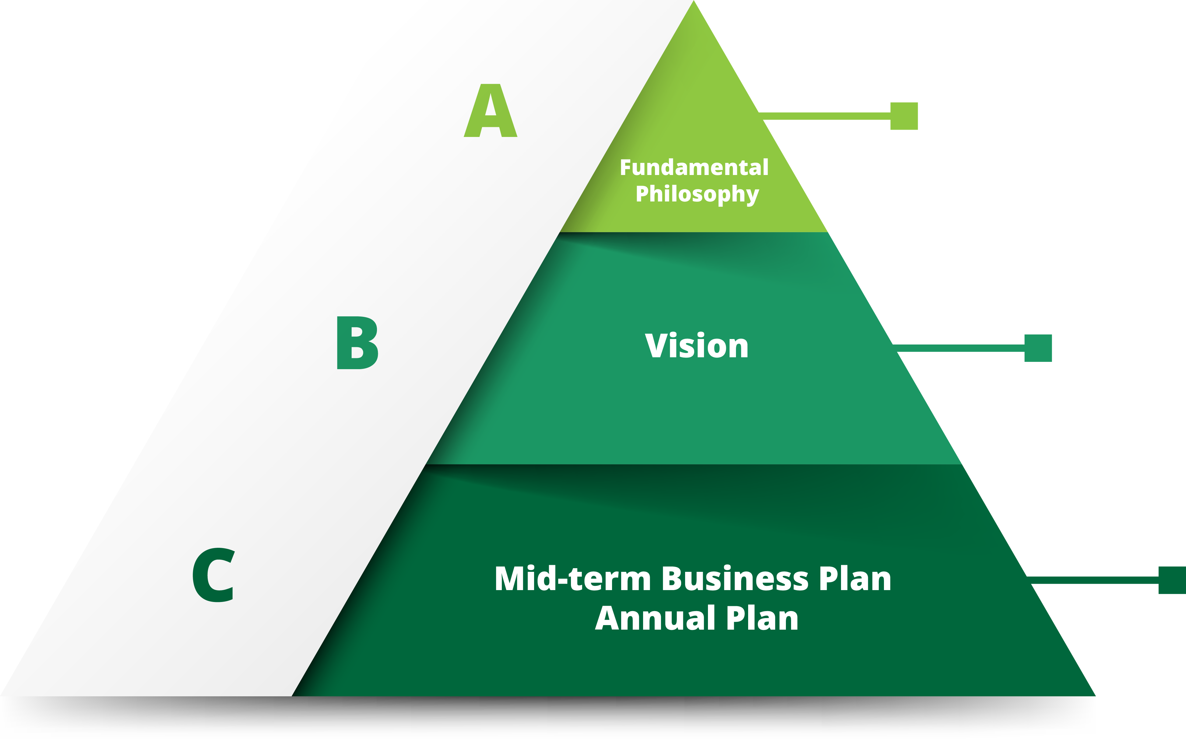 Strategies for business activities reflecting shifts in the business environment, consisting of policies, concrete action plans, and numerical targets